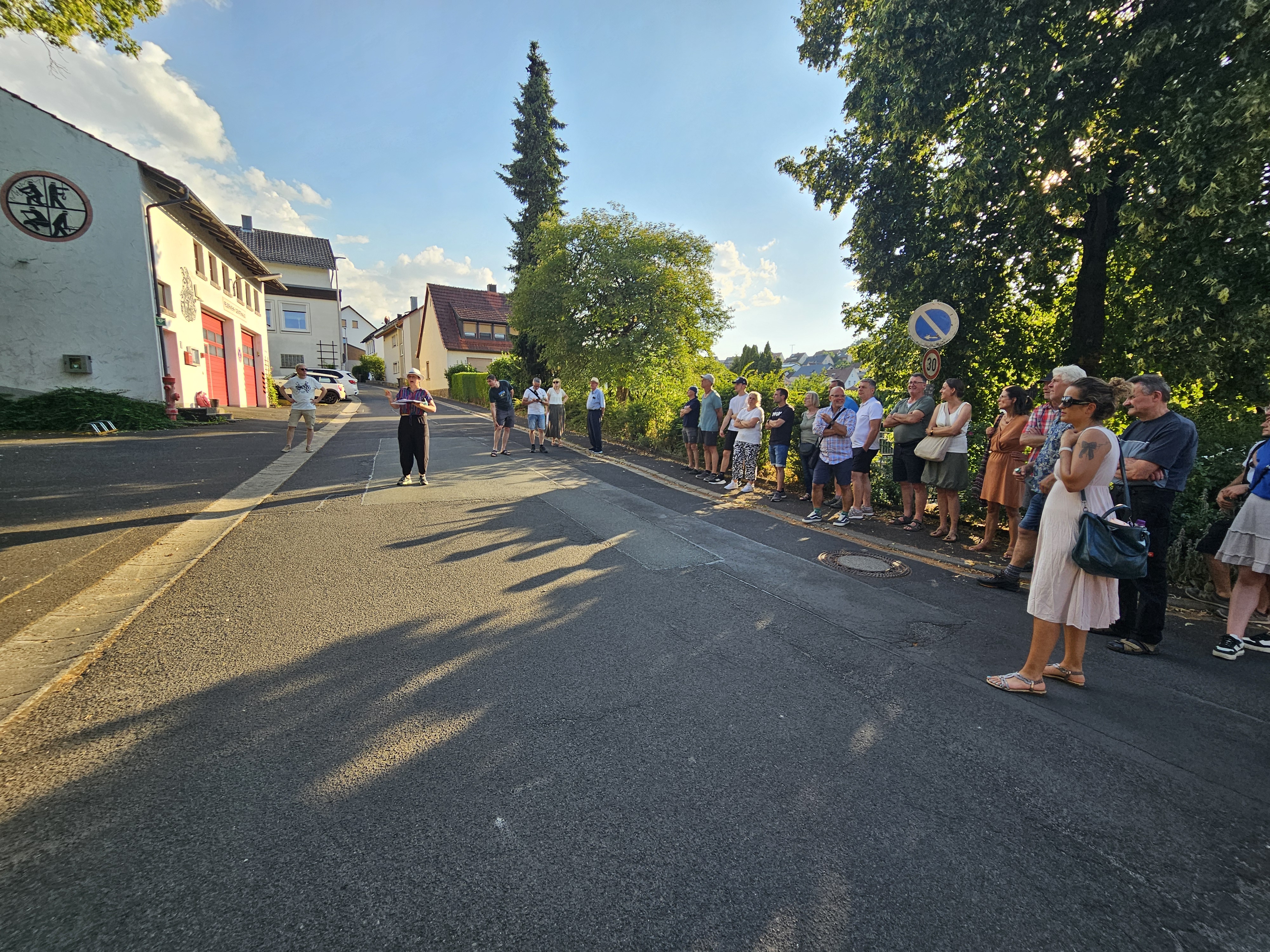 Der Abend begann mit einem geführten Ortsrundgang, bei dem markante Stellen im Altort, u.a. Kirchberg 7 oder Plätze wie „Am Weyer“ oder „Marienplatz“ aufgesucht und konkrete Handlungsbedarfe aufgezeigt wurden. Anschließend konnten die Teilnehmenden in einer moderierten Diskussionsrunde ihre Ideen, Wünsche und Anregungen einbringen. Besonders intensiv wurden Themen wie Verkehrssicherheit, Begrünung und Fassadengestaltung diskutiert.